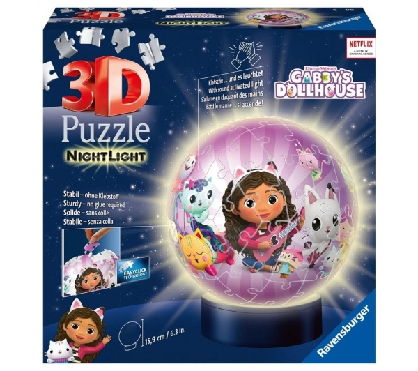 Puzzle 3D Świecąca Kula: Koci Domek Gabi 72 elementy