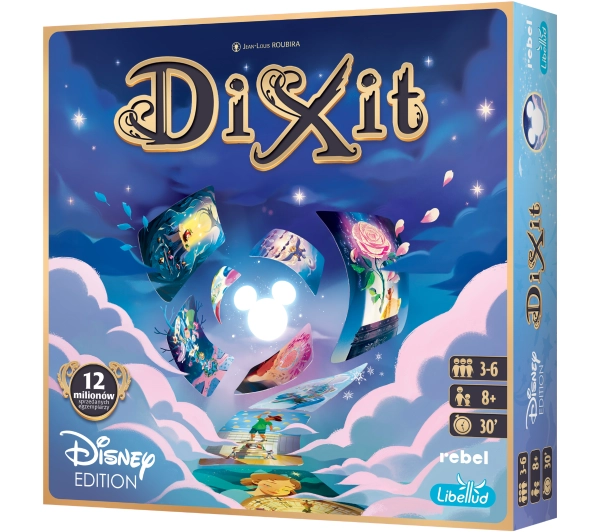 Opis: Dixit Disney to wyjątkowa edycja popularnej gry rodzinnej, w której wymyślamy i odgadujemy skojarzenia do przepięknie ilustrowanych kart. Wśród 84 grafik znajdziemy nawiązania do najpopularniejszych animacji, które zachwycają kolejne pokolenia.