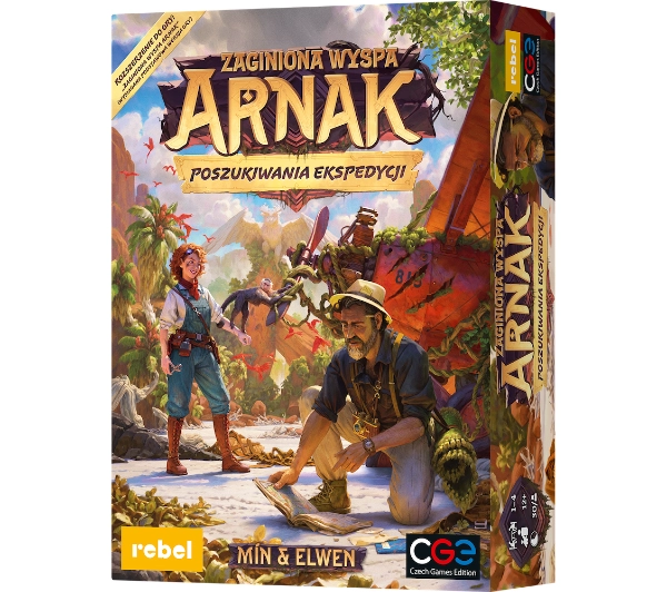 Opis: Uwaga! To nie jest samodzielna gra! Do rozgrywki wymagana jest podstawowa wersja gry: Zaginiona wyspa Arnak. Zaginiona wyspa Arnak: Poszukiwania ekspedycji to rozszerzenie, które zaprasza graczy do udziału w specjalnej kampanii fabularnej, którą możesz rozegrać samodzielnie lub w dwuosobowym trybie współpracy.