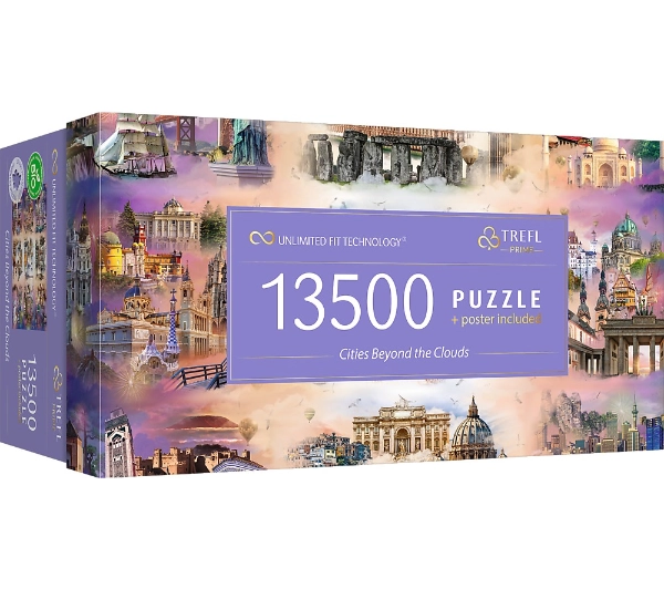 Opis: Odkryj puzzle Trefl Prime UFT składające się z imponujących 13 500 elementów! Ukazują one spowity chmurami kolaż ze słynnymi miastami z całego świata - od Nowego Jorku po Sydney.