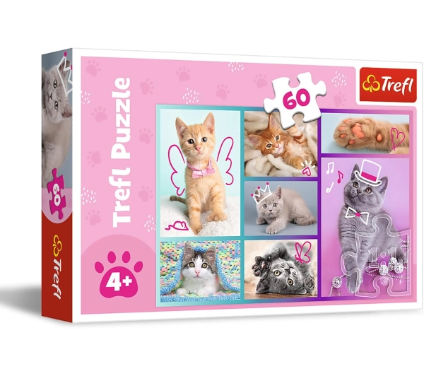 Opis: Słodkie kociaki to puzzle składające się z 60 elementów, zaprojektowaną z myślą o wszystkich fanach i fankach uroczych kotków. Po ułożeniu układanki powstanie obrazek o wymiarach 330x220mm.
