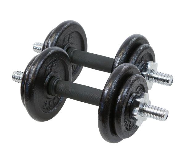 14 częściowy zestaw hantli do ćwiczeń siłowych, ogólnorozwojowych i rehabilitacyjnych. Ćwiczenia przy użyciu hantli pomagają kształtować mięśnie przedramion, ramion, barków oraz klatki piersiowej.Trening można wykonywać stojąc, siedząc bądź leżąc na ławce treningowej. Hantle stosowane są przy treningach siłowych jak i kombinacjach ćwiczeń wydolnościowych. Produkt przeznaczony jest głównie do użytku domowego. W skład zestawu wchodzą:<ul> <li>4 obciążeń 1.25kg (28mm średnicy otworu)</li> <li>4 obciążenia 2.5kg (28mm średmicy otworu)</li> <li>2 gryfy proste 35cm (25.4mm średnicy)</li> <li>4 chromowane nakrętki mocujące ze stali nierdzewnej</li></ul>Waga zestawu wynosi ok. 19kgWymiary walizki: 39 x 9 x 29 cm