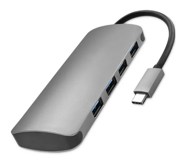 Hub USB Qoltec 50379 Adapter USB-C 3.1 5w1 4x USB 3.0 DC Szary