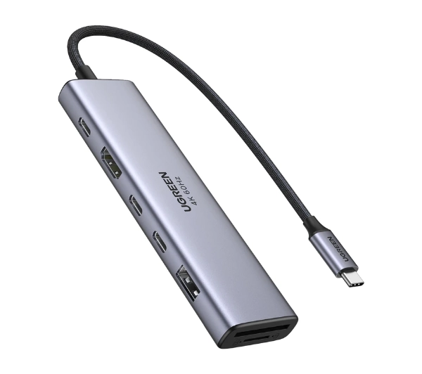 Hub USB UGREEN Revodok 7w1 USB-C do 2x USB-C 3.2 USB-A 3.2 HDMI 4K 60Hz SD/TF PD 100W Szary