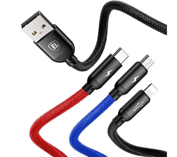 Kabel Baseus USB 3w1 USB-C / Lightning / Micro 3A 1,2m Czarny