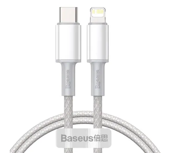 Kabel Baseus USB-C do Lightning High Density Braided 20W 5A PD 1m Biały