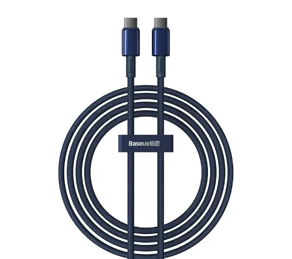 <h2>Kabel USB-C do USB-C Baseus Tungsten Gold, 100 W, 2 m (niebieski)</h2><p>Potrzebujesz kabla, który zapewni szybkie i bezpieczne ładowanie oraz transfer danych? Baseus Tungsten Gold jest rozwiązaniem, na które możesz liczyć! Dzięki mocy ładowania PD 100 W i natężeniu 5 A oferuje szybkie i efektywne ładowanie Twoich urządzeń. Prędkość transferu danych do 480 Mbps sprawia, że przesyłanie plików staje się jeszcze wygodniejsze. Wykonany z wysokiej jakości stopu cynku i nylonowego oplotu jest gotowy na wszelkie wyzwania codzienności, a interfejs USB-C gwarantuje szeroką kompatybilność z wieloma popularnymi sprzętami.</p> <h2>Ładowanie i transfer danych</h2><p>Ładuj swoje urządzenia jeszcze szybciej! Baseus Tungsten Gold oferuje moc ładowania sięgającą 100 W i wspiera standard szybkiego ładowania Power Delivery. W zaledwie 30 minut odnowisz energię najnowszych modeli smartfonów Apple do poziomu 56%! Produkt umożliwia także transfer danych sięgający 480 Mbps, umożliwiając sprawne i efektywne przesyłanie plików między Twoimi urządzeniami.</p> <h2>Bezpieczeństwo użytkowania</h2><p>Nie musisz się martwić o bezpieczeństwo swojego urządzenia — wbudowany chip inteligentnie dostosowuje parametry ładowania do podłączonego urządzenia, zapobiegając uszkodzeniom. Dodatkowo nylonowy oplot zapewnia wyjątkową trwałość i odporność na uszkodzenia mechaniczne, co sprawia, że kabel Baseus Tungsten Gold posłuży Ci przez wiele lat, niezależnie od intensywności użytkowania.</p>