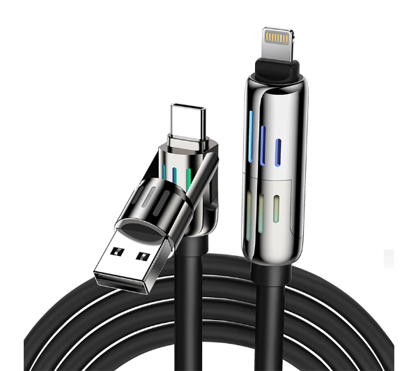 Kabel BlitzWolf 4w1 USB-C/USB-A do USB-C/Lightning BW-HDC6 1,2m 240W RGB Czarny