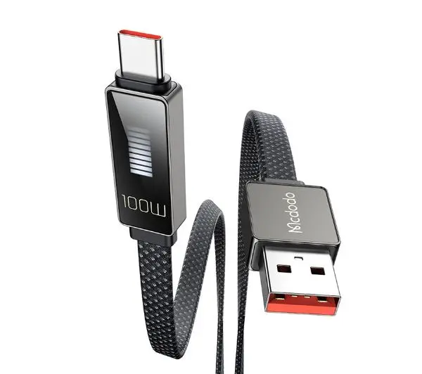 <h2>Kabel USB-C Mcdodo CA-4980 z wyświetlaczem 1.2m (czarny)</h2><p>Kabel USB-C Mcdodo CA-4980 oferuje nie tylko szybkie ładowanie i transmisję danych z prędkością 480 Mbps, ale także wprowadza szereg innowacyjnych funkcji. Odkryj, jak możesz zmienić sposób, w jaki korzystasz z elektroniki.</p> <h2>Pełna kontrola</h2><p>Model CA-4980 wyposażony jest w innowacyjny wyświetlacz LED, który umożliwia bieżący monitoring procesu ładowania. Dzięki niemu zawsze możesz cieszyć się kontrolą nad stanem naładowania Twoich urządzeń.</p> <h2>Duża kompatybilność</h2><p>Produkt jest kompatybilny z urządzeniami Huawei, Samsung czy też OPPO i wspiera technologię Quick Charge. Dzięki zaawansowanemu układowi scalonemu zapewnia optymalną wydajność bez względu na markę urządzenia.</p> <h2>Maksymalna wydajność</h2><p>Mcdodo CA-4980 gwarantuje nie tylko szybkie ładowanie, ale także imponujący prąd o wartości 6 A oraz maksymalną moc 100 W. W efekcie Twój smartfon czy laptop zostaną naładowane w rekordowym czasie.</p> <h2>Niezawodność na lata</h2><p>Kabel Mcdodo został stworzony z myślą o trwałości, dlatego wykonano go ze stopu cynku i nylonu. Dzięki temu jest on odporny na uszkodzenia, naderwania i zużycie. Ponadto jego długość wynosząca 1,2 metra zapewnia wygodę użytkowania.</p>