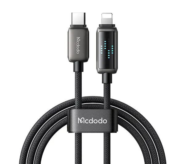 <h2>Kabel USB-C do Lightning Mcdodo CA-2630, 36W, wyświetlacz LED, 1.2m</h2><p>Mcdodo CA-2630 został zaprojektowany z myślą o szybkiej i efektywnej obsłudze ładowania oraz przesyłu danych dla urządzeń Apple. Wyposażony w wyświetlacz LED i wspierający technologię szybkiego ładowania o mocy do 36W, oferuje niezawodność, zapewniając użytkownikom komfort i bezpieczeństwo podczas ładowania.</p> <h2>Wydajne ładowanie i obsługa Apple Fast Charging</h2><p>Dzięki wsparciu dla szybkiego ładowania o mocy do 36W kabel Mcdodo CA-2630 umożliwia naładowanie iPhone’a do 60% w zaledwie 30 minut. Zastosowanie technologii Apple Fast Charging sprawia, że kabel doskonale współpracuje z urządzeniami wyposażonymi w złącze Lightning, zapewniając szybkie i efektywne ładowanie nie tylko smartfonów, ale także innych kompatybilnych urządzeń.</p> <h2>Monitorowanie ładowania dzięki wyświetlaczowi LED</h2><p>Zintegrowany wyświetlacz LED pozwala na bieżąco śledzić prędkość ładowania, dzięki czemu masz pełną kontrolę nad procesem zasilania urządzenia. Dodatkowe efekty świetlne nadają kablowi elegancki i nowoczesny wygląd, sprawiając, że jest nie tylko praktyczny, ale i stylowy.</p> <h2>Trwała konstrukcja</h2><p>Obudowa wykonana ze stopu cynku i wytrzymały nylonowy oplot gwarantują długotrwałe użytkowanie oraz wysoką odporność na zarysowania, przetarcia i uszkodzenia mechaniczne. Solidne wykonanie zapewnia niezawodność nawet przy intensywnym, codziennym użytkowaniu, co przekłada się na wyjątkową trwałość.</p> <h2>Bezpieczne ładowanie i szybki transfer danych</h2><p>Mcdodo CA-2630 oferuje stabilne napięcie podczas ładowania, minimalizując ryzyko przegrzewania urządzenia i dbając o długą żywotność baterii. Dodatkowo kabel umożliwia szybki transfer danych, co pozwala na jednoczesne ładowanie i przesyłanie plików, zapewniając pełną wygodę i efektywność w codziennym użytkowaniu.</p>