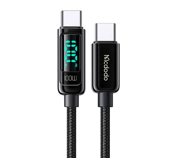 <h2>Kabel USB-C do USB-C Mcdodo CA-8820 100W, 1.2m (czarny)</h2><p>Kabel Mcdodo CA-8820 oferuje złącza USB-C do USB-C, moc 100 W i maksymalny prąd 5 A. Dzięki wbudowanemu chipowi E-marker zapewnia szybkie i bezpieczne ładowanie. Dodatkowo dołączony do zestawu rzep ułatwia przechowywanie i zapobiega plątaniu się przewodu.</p> <h2>Duża wytrzymałość</h2><p>Dzięki zastosowaniu stopu cynku i nylonu kabel Mcdodo CA-8820 jest odporny na zginanie, ścieranie i korozję. Akcesorium jest także niepodatne na przegrzanie i uszkodzenia mechaniczne, a użytkowanie go jest całkowicie bezpieczne.</p> <h2>Efektywne i bezpieczne ładowanie</h2><p>Zaawansowany chip E-marker sprawia, że kabel automatycznie dostosowuje natężenie prądu do podłączonego urządzenia, gwarantując szybkie i bezpieczne ładowanie. Wbudowany wyświetlacz pokazuje moc ładowania w czasie rzeczywistym, co umożliwia monitorowanie procesu na bieżąco.</p> <h2>Kompatybilność</h2><p>Model Mcdodo CA-8820 jest kompatybilny z urządzeniami wyposażonymi w port USB-C, w tym laptopami, smartfonami, tabletami i konsolami do gier. Jego moc wynosząca 100 W oraz wsparcie dla szybkiego ładowania zapewniają dużą wydajność.</p>