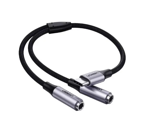 <h2>Rozdzielacz audio AUX UGREEN AV144 kabel USB-C, 25cm (czarny)</h2><p>Rozdzielacz audio UGREEN AV144 pozwoli Ci podłączyć dwie pary słuchawek ze złączem 3,5 mm do jednego urządzenia wyposażonego w port USB-C, na przykład do smartfona lub laptopa. Dzięki temu możesz wygodnie słuchać muzyki razem z drugą osobą! Produkt zapewnia niezawodną transmisję dźwięku i wyróżnia się wysoką wytrzymałością – nie obawiaj się jego szybkiego uszkodzenia.</p>