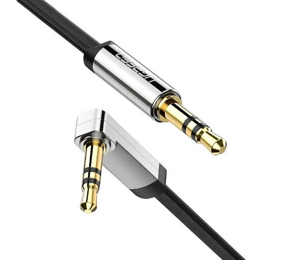 <h2>Kątowy kabel mini jack 3,5mm AUX UGREEN AV119 płaski 1m (czarny)</h2><p>Kabel audio UGREEN AV119 to niezastąpione akcesorium do połączenia różnych urządzeń audio. Wysoka jakość wykonania z ocynkowanej miedzi oraz pozłacane wtyczki 24-karatowym złotem zapewniają krystalicznie czysty dźwięk.</p> <h2>Wysokiej jakości połączenia audio</h2><p>Kabel AV119 dostarcza dźwięk o najwyższej jakości. Użycie materiałów takich jak miedź o wysokiej czystości i złocone złącza minimalizuje straty sygnału i eliminuje zakłócenia, co skutkuje bogatym, pełnym brzmieniem. Idealnie nadaje się do połączenia smartfona, tabletu, laptopa czy komputera z urządzeniami audio, takimi jak głośniki, wzmacniacze czy systemy kina domowego.</p> <h2>Wszechstronność</h2><p>Dzięki uniwersalnej konstrukcji z kątowym wtykiem Jack 3.5 mm, kabel UGREEN AV119 oferuje elastyczność podłączenia w różnych konfiguracjach, idealnie sprawdzając się w trudno dostępnych miejscach, gdzie proste wtyki mogłyby nie być wygodne. Kabel umożliwia bezproblemowe przesyłanie dźwięku między różnymi urządzeniami audio, zapewniając łatwe i stabilne połączenie bez kompromisów na jakości.</p> <h2>Solidna konstrukcja i bezpieczeństwo użytkowania</h2><p>Wykonany z trwałych materiałów, kabel UGREEN AV119 jest odporny na zużycie i korozję, co zapewnia długowieczność i niezawodność. Złocone wtyczki nie tylko poprawiają jakość dźwięku, ale również chronią przed utlenianiem, co jest szczególnie ważne w codziennym użytkowaniu.</p>