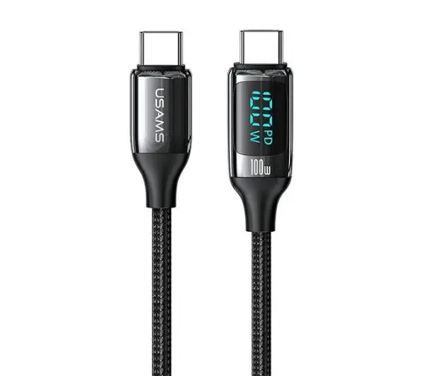 Kabel USAMS U78 USB-C na USB-C LED Fast Charging 100W 1,2m Czarny