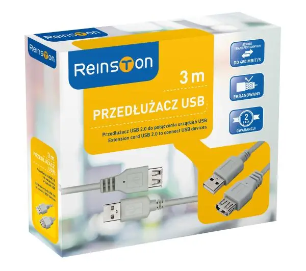 Informacje dodatkowe: przedłużacz USB do połaczenia różnych urządzeń USB takich jak np. myszy komputerowe, klawiatury, słuchawki i inne, zgodne ze standardem USB 2.0, wstecznie kompatybilne z USB 1.1, szybki transfer danych do 480 Mbit/s, przewód ekranowany