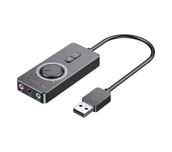 <h2>Zewnętrzna karta dźwiękowa USB 2.0 Vention CDRBF 1m (czarny)</h2><p>Zewnętrzna karta dźwiękowa Vention CDRBF to idealne rozwiązanie dla osób, które potrzebują dodatkowych portów audio w swoim laptopie. Wyposażono ją w port słuchawkowy, port mikrofonowy oraz port 2w1, dzięki czemu znacznie zwiększysz możliwości swojego urządzenia. Interfejs USB 2.0 pozwala na bezproblemowe podłączenie, a precyzyjnie zaprojektowana konstrukcja zapewnia wygodę obsługi i wysoką jakość dźwięku.</p> <h2>3 porty</h2><p>Karta dźwiękowa Vention CDRBF oferuje 3 porty Jack (słuchawkowy, mikrofonowy i 2w1), co pozwala na jednoczesne podłączenie słuchawek, głośników oraz mikrofonu. Dzięki temu możesz korzystać z różnych urządzeń audio bez konieczności częstego przepinania kabli. Możliwość podłączenia 2 zestawów słuchawek jednocześnie sprawia, że możesz cieszyć się muzyką razem z bliską osobą.</p> <h2>Dopracowana konstrukcja</h2><p>Konstrukcja karty została starannie przemyślana, aby zapewnić maksymalną funkcjonalność. Wbudowane pokrętło do regulacji głośności umożliwia łatwe dostosowanie poziomu dźwięku do indywidualnych potrzeb. Praktyczne przyciski pozwalają na szybkie wyciszenie mikrofonu lub słuchawek. Dodatkowo niebieskie wskaźniki LED informują o statusie pracy urządzenia, co ułatwia użytkowanie.</p>