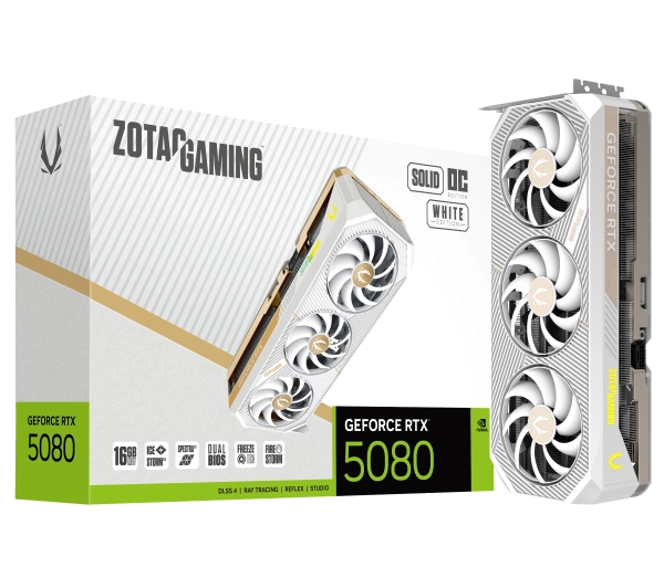 Karta graficzna Zotac Gaming GeForce RTX 5080 SOLID OC White Edition 16GB GDDR7 256bit DLSS 4