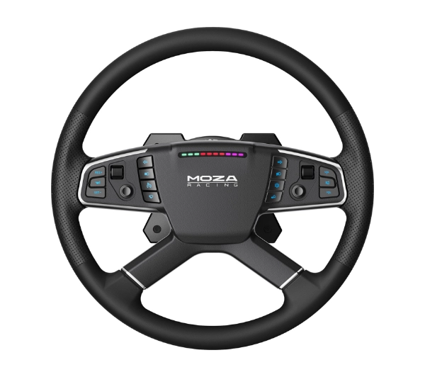 <h2>Kierownica ciężarowa Moza Racing TSW RS060</h2><p>MOZA Racing TSW RS060 to sprzęt, który przenosi realizm jazdy ciężarówką na zupełnie nowy poziom. Zaprojektowana specjalnie do symulacji pojazdów ciężkich, kierownica oferuje pełnowymiarową obręcz o średnicy 400 mm, inspirowaną prawdziwymi modelami z kabin ciężarówek. Klasyczna, czteroramienna konstrukcja z chromowanymi akcentami i nowoczesnymi detalami łączy estetykę z funkcjonalnością, zapewniając autentyczne wrażenia z jazdy.</p> <h2>Skóra, aluminium i trwałość na lata</h2><p>Z zewnątrz – ręcznie obszywana perforowana mikrofibra, która nie tylko świetnie wygląda, ale zapewnia też wygodny, pewny chwyt niezależnie od długości jazdy. W środku – sztywna konstrukcja z aluminium klasy lotniczej o grubości 4 mm, wzmocniona stalowymi elementami o grubości do 6 mm. To połączenie nie zostawia miejsca na kompromisy. Kierownica MOZA TSW RS060 została stworzona, by wytrzymać tysiące kilometrów wirtualnych tras i miliony manewrów – i potwierdziła to w testach obciążeniowych. Nawet przy maksymalnych siłach sprzężenia zwrotnego zachowuje pełną stabilność i nie traci na precyzji.</p> <h2>Dostosuj do swojego stylu jazdy</h2><p>Kierownica TSW RS060 została wyposażona w 14 mechanicznych przycisków z pełnym podświetleniem RGB (efekty świetlne oparte na trzech kolorach: czerwonym, zielonym i niebieskim) – możesz wybierać spośród 16,7 miliona kolorów i dopasować każdy z nich do własnych preferencji. Dzięki gotowym ikonom przypisanym do funkcji z symulatorów ciężarówek sterowanie staje się naturalne i intuicyjne. Dodatkowe 10 diod LED (Light Emitting Diode, dioda elektroluminescencyjna) informuje o obrotach silnika, a wszystkie efekty świetlne i funkcje możesz skonfigurować za pomocą aplikacji MOZA Pit House.</p> <h2>Łatwa instalacja, szeroka kompatybilność</h2><p>System szybkiego montażu wykonany z aluminium lotniczego pozwala w kilka sekund zainstalować kierownicę na dowolnej bazie MOZA. Dzięki bezprzewodowej komunikacji nie musisz martwić się o przewody – wszystko działa stabilnie i bez opóźnień. Kierownica wspiera również montaż na ramie aluminiowej lub biurku, z możliwością regulacji kąta nachylenia i wysokości w zakresie 0–75°. Działa także z bazami firm trzecich – wystarczy zastosować adapter MOZA.</p> <h2>Przemyślane sterowanie i pełna kontrola</h2><p>Na froncie znajdziesz aluminiowe pokrętła i dwa joysticki o ultracienkiej konstrukcji, które mogą pełnić funkcję D-padów (Directional Pad, krzyżak kierunkowy). Ich działanie jest płynne i precyzyjne, co ułatwia sterowanie w złożonych sytuacjach drogowych. Dzięki oprogramowaniu MOZA Pit House możesz ustawić każdy element kierownicy – od kolorów i efektów świetlnych po funkcjonalność łopatek sprzęgła.</p>