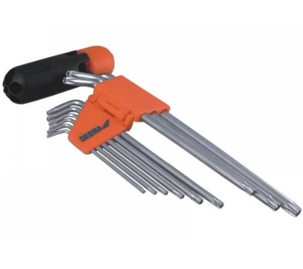 Zestaw 9 kluczy TORX CrVRozmiary kluczy:T10;T15;T20;T25; T27;T30;T40;T45;T50