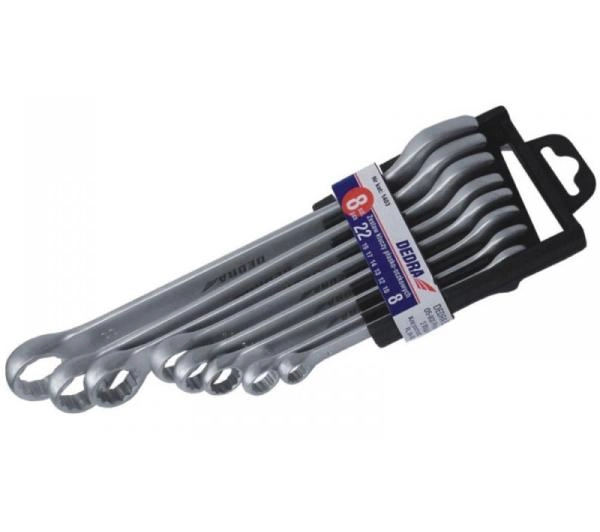 <ul> <li>Klucze płasko-oczkowe zestaw 8 szt</li> <li>Rozmiar kluczy płaskich: 6;8;10;12;13;14;17;19 mm</li> <li>Rozmiar kluczy oczkowych: 6;8;10;12;13;14;17;19 mm</li></ul>