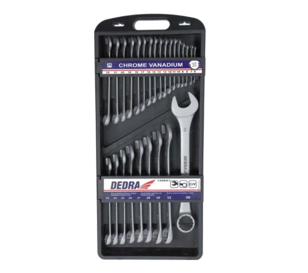 Zestaw kluczy płasko-oczkowych 26 szt.:W zestawie klucze w rozmiarach 6-28, 30, 32, 36