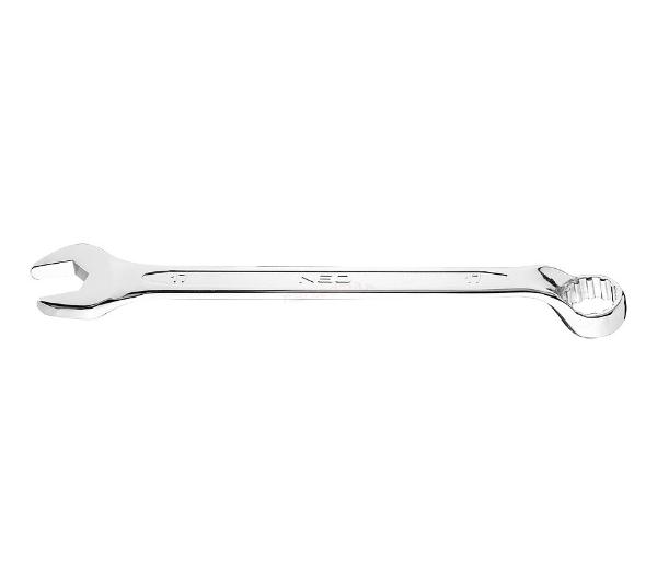 Klucz płasko-oczkowy NEO, odgięty z oczkiem SPLINE. Część otwarta klucza posiada profilowane szczęki, które podczas pracy zapewniają aż cztery punkty styczne ze śrubą lub nakrętką sześciokątną. Lepsze dopasowanie części otwartej to mniejsze ryzyko ześlizgnięcia się narzędzia. Cztery punkty styczne to możliwość przyłożenia większej siły bez obawy o uszkodzenie nakrętki lub łba śruby (również, gdy odkręcany element jest częściowo zniszczony lub jest słabej jakości). Oczko SPLINE to gwarancja wysokiej użyteczności klucza – jego specjalna konstrukcja umożliwia pracę z różnymi rodzajami śrub (kwadrat, sześciokąt, dwunastokąt, Torx, SPLINE). Specjalne odgięcie umożliwia pracę w trudno dostępnych miejscach oraz poprawia chwyt narzędzia. Wykonanie zgodnie z normą DIN 3113, gwarantuje jakość, użyteczność i trwałość klucza. Wysokogatunkowa stal chromowo-wanadowa zapewnia długoletnią wytrzymałość narzędzia. Polerowana powłoka ułatwia czyszczenie. Klucz dostępny w 12 najpopularniejszych rozmiarach (8 – 32 mm). Niezawodność produktu potwierdza 25-letnia gwarancja. Marka NEO spełnia oczekiwania profesjonalistów.