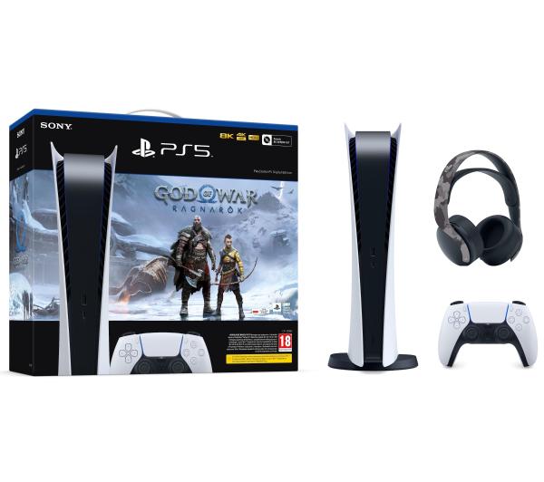 Konsola Sony PlayStation 5 Digital Edition (PS5) + God of War Ragnarok + słuchawki PULSE 3D (szary kamuflaż)