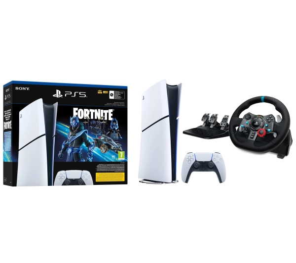 Konsola Sony PlayStation 5 Digital Slim D Chassis (PS5) 1TB Zestaw Fortnite Cobalt + Kierownica Logitech G29 Racing Wheel