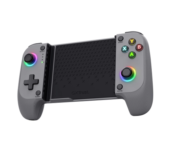 <h2>Trust GXT 735G Mylox Szary</h2> Pad Trust GXT 735G Mylox Szary to precyzyjny kontroler zaprojektowany z myślą o wygodzie i responsywności podczas długich sesji grania. Dzięki ergonomicznemu kształtowi i wysokiej czułości przycisków zapewnia pełną kontrolę nad każdą rozgrywką. Graj zawsze i wszędzie dzięki mobilnej kompatybilności Trzy sposoby gry zapewniają różnorodność i elastyczność rozgrywki Wejdź do gry szybko dzięki intuicyjnemu i prostemu sterowaniu Ciesz się grą przez wiele godzin bez przerw i ograniczeń czasowych Zabawa dla wszystkich rozmiarów telefonów — kompatybilny z różnymi modelami <h2>Poznaj pad Trust GXT 735G Mylox</h2> Graj zawsze i wszędzie Pad Trust GXT 735G Mylox umożliwia grę w dowolnym miejscu dzięki szerokiej kompatybilności z wieloma urządzeniami. Niezależnie od tego, czy jesteś w domu, czy w podróży, możesz cieszyć się pełną kontrolą i komfortem podczas każdej rozgrywki, bez konieczności dodatkowego sprzętu czy skomplikowanej konfiguracji. Trzy sposoby gry Kontroler oferuje trzy różne tryby gry - niezależnie od tego, czy planujesz grać w gry mobilne na iOS lub Androidzie z obsługą kontrolera, streamować swoje ulubione tytuły z PlayStation i Xbox bezpośrednio na telefon1, czy też zanurzyć się w świecie grania w chmurze na PC — ten kontroler sprawdzi się w każdej z tych ról! Wejdź do gry szybko i wygodnie Trust GXT 735G Mylox został zaprojektowany tak, by umożliwić szybkie rozpoczęcie rozgrywki bez zbędnych komplikacji i czasochłonnych ustawień. Intuicyjne przyciski z podświetleniem LED RGB i responsywne sterowanie pozwalają na natychmiastowe reagowanie w trakcie gry, co ma kluczowe znaczenie podczas intensywnych i dynamicznych potyczek z przeciwnikami. Długie godziny rozgrywki Dzięki długiemu czasowi pracy na jednym ładowaniu i stabilnemu połączeniu bezprzewodowemu Trust GXT 735G Mylox pozwala na granie nawet do 12 godzin bez przerw. Możesz korzystać z niego zarówno podczas krótkich sesji, jak i długich maratonów gamingowych, nie martwiąc się o rozładowanie czy utratę sygnału w trakcie rozgrywki. Zabawa dla wszystkich telefonów Pad Trust GXT 735G Mylox jest kompatybilny z większością smartfonów dostępnych na rynku. Dzięki temu zapewnia płynną i wygodną rozgrywkę - wytrzymały gumowany, sprężynowy zacisk telefonu zapewnia bezpieczeństwo urządzenia i sprawia, że możesz cieszyć się ulubionymi grami na swoim telefonie bez ograniczeń technicznych. <h2>Zawartość opakowania Trust GXT 735G Mylox</h2> W opakowaniu Kontroler Kabel USB (Universal Serial Bus) Instrukcja obsługi Trust – marka godna zaufania Innowacyjne rozwiązania Oferowane urządzenia łączą nowoczesne technologie z funkcjonalnością, zapewniając komfort i precyzję grania Szeroki asortyment Wśród produktów tej marki znajdziesz pady, klawiatury, słuchawki, głośniki, myszki i inne akcesoria do komputerów Wieloletnia tradycja Firma powstała w 1983 roku i przez lata zdobyła zaufanie użytkowników sprzętu komputerowego na całym świecie <h2>Informacje dodatkowe</h2> 1) Wymagana aplikacja do zdalnego grania; funkcja PlayStation dostępna wyłącznie na iOS.