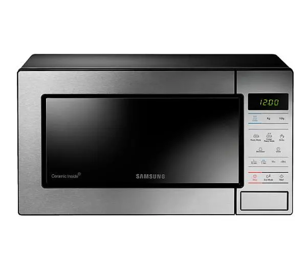 <a> WYBRANE CECHY </a><a>Ceramic Inside™ </a><a> gotuj zdrowo i smacznie </a><a> EKONOMICZNA </a><a>design</a><a> porównaj produkty </a> <h2>WYBRANE CECHY</h2> <h4>Powłoka Ceramic Inside™</h4><p>Antybakteryjna powłoka z emalii ceramicznej zapobiega nie tylko zarysowaniom, ale także ogranicza przenikanie nieprzyjemnych zapachów.</p><h4>System TDS</h4><p>System Potrójnej Dystrybucji to gwarancja równomiernej dystrybucji ciepła z trzech punktów, co sprawia, że potrawy są idealnie przygotowane do spożycia.</p><h4>Automatyczne rozmrażanie</h4><p>Błyskawiczne rozmrożenie żywności przy jednoczesnym zachowaniu wszystkich wartości odżywczych.</p> <h4> </h4> <h4> </h4> <h4> </h4> <h2>Podgrzewaj, rozmrażaj, Gotuj!</h2> <p>Dzięki kuchence mikrofalowej o mocy 800 W szybko przygotujesz obiad lub kolację. Pojemność 23 l oraz automatyczne programy podgrzewania i rozmrażania składników, z pewnością ułatwią przyrządzenie jedzenia. Nie musisz już spędzać godzin w kuchni - wystarczy kilka minut, aby przygotować smaczny posiłek.</p> <h2>Antybakteryjna powłoka Ceramic Inside™</h2> <p>Wykorzystywana przez Samsung powłoka Ceramic Inside™ zapewnia higienę i łatwą pielęgnację urządzenia. Bez problemu pozbędziesz się tłustych i zaschniętych zabrudzeń. Nie musisz również martwić się o bakterie i nieprzyjemny zapach. Technologia przy pomocy, której stworzone jest wnętrze kuchenki jest podobna do wykorzystywanej przy wyrabianiu wysokiej jakości ceramiki. To sprawia, że urządzenie jest trwalsze, bardziej odporne na zużycie i zarysowania.</p> <h3>Ochrona antybakteryjna</h3><p>Powłoka Ceramic Inside™ zastosowana w kuchence Samsung zapobiega rozwojowi bakterii* co zostało potwierdzone badaniami. * Testy przeprowadzone w niemieckim Instytucie w Hohenstein.</p><h3>Odporność na zadrapania</h3><p>Dzięki powłoce z emalii ceramicznej wnętrze kuchenki jest 7 x bardziej odporne na zadrapania i rdzę w porównaniu do innych tego typu urządzeń.</p> <h3>Łatwość czyszczenia</h3><p>Wnętrze jest gładkie i trwałe, a jego czyszczenie wyjątkowo łatwe i wygodne, co pozwala na zachowanie nieskazitelnej czystości.</p><h3>Brak przebarwień</h3><p>Tłuszcz i wysoka temperatura mogą odbarwić wnętrze kuchenki mikrofalowej. Powłoka z emalii ceramicznej temu zapobiega.</p> <h2>gotuj zdrowo i smacznie</h2> <h3>Doskonały efekt za każdym razem. System Potrójnej Dystrybucji</h3> <p>Aby Twój posiłek był zawsze idealnie przygotowany, urządzenie wyposażone jest w system TDS (Triple Distribution System). Mikrofale rozprowadzane są po kuchence z trzech punktów, zapewniając równomierne podgrzanie produktów. Ciesz się idealnie przygotowanymi daniami dzięki TDS.</p> <h3>Szybkie podgrzewanie potraw. Auto Reheat</h3> <p>Kuchenka mikrofalowa posiada 3 programy szybkiego podgrzewania posiłków. To praktyczne rozwiązanie, z którego warto korzystać, gdy chcemy szybko odgrzać gotową potrawę.</p> <h3>Bez utraty smaku. Szybkie, automatyczne rozmrażanie</h3> <p>3 programy pozwalają na natychmiastowe rozmrożenie składników, jak również całych potraw z zamrażalnika! Teraz już nie musisz pamiętać o wcześniejszym wykładaniu mięs, ciast czy innych zamrożonych produktów. Najważniejsze jest jednak, że rozmrażana żywność nie traci wartości odżywczych.</p> <h3>Dodatkowy czas grzania. +30 sekund</h3> <p>Przycisk +30 sekund to wygodne i szybkie rozwiązanie, pozwalające bez zbędnych ustawień, jednym dotknięciem wydłużyć czas podgrzewania potrawy o dodatkowe30 sekund.</p> <h2>EKONOMICZNA I ergonomiczna</h2> <h3>Oszczędź na energii. Tryb ECO</h3> <p>Chcesz płacić mniej za prąd, bez potrzeby ciągłego odłączania kuchenki z kontaktu? Specjalny tryb ECO ogranicza energię wykorzystywaną przez urządzenie do minimum. Kuchenka pozostaje w stanie gotowości (standby), więc możeszz niej korzystać w każdej chwili.</p> <h3>Bezpieczeństwo ponad wszystko. Blokada rodzicielska</h3> <p>Blokada rodzicielska to świetne rozwiązanie i zabezpieczenie, zwłaszcza, gdy w kuchni towarzyszą Ci mali pomocnicy. W momencie rozpoczęcia podgrzewania potrawy skutecznie zablokuje panel sterowania kuchenki. Wykluczając w ten sposób możliwość przypadkowego włączenia innych funkcji przez najmłodszych.</p> <h2>Nowoczesny design</h2> <p>Kuchenka mikrofalowa wykonana ze stali nierdzewnej z frontem w kolorze inox, świetnie wkomponuje się w nowoczesny wystrój kuchni. Czytelny wyświetlacz LED oraz wygodne dotykowe przyciski, pozwalają cieszyć się łatwością obsługi urządzenia. Teraz sterowanie elektroniczne jest jeszcze wygodniejsze.</p> <h2>Panel sterowania</h2> 1<h5>Automatyczna funkcja szybkiego rozmrażania</h5>2<h5>Wybór wagi produktu</h5>3<h5>Wybór wagi produktu</h5>4<h5>Podgrzewanie/danie gotowe</h5>5<h5>Podgrzewanie/danie mrożone</h5>6<h5>Podgrzewanie napoi</h5>7<h5>Przycisk trybu mikrofale</h5>8<h5>Przycisk ustawiania zegara</h5>9<h5>Ustawianie czasu</h5>10<h5>Ustawianie czasu</h5>11<h5>Dodatkowe 10 sekund</h5>12<h5>Podgrzewanie +30 sekund</h5>13<h5>Przycisk zatrzymania/anulowania</h5>14<h5>Przycisk oszczędzania energii</h5>15<h5>Przycisk start</h5>16<h5>Przycisk otwierania drzwiczek</h5> <h2>rysunek techniczny</h2> <ul> <li>A Szerokość: 489 mm</li> <li>B Głębokość: 355 mm</li> <li>C Wysokość: 275 mm</li></ul> <h2>W OPAKOWANIU</h2> <h2>porównaj produkty</h2> <table> <tbody> <tr> <td> </td> <td> ME83M</td> <td> GE83M</td> <td> MG23H3115NK</td> </tr> <tr> <td>Pojemność</td> <td>23 L</td> <td>23 L</td> <td>23 L</td> </tr> <tr> <td>Rodzaj sterowania</td> <td>Elektroniczne</td> <td>Elektroniczne</td> <td>Elektroniczne</td> </tr> <tr> <td>Typ wyświetlacza</td> <td>LED</td> <td>LED</td> <td>LED - Ice Blue</td> </tr> <tr> <td>Wykończenie wnętrza</td> <td>Emalia ceramiczna</td> <td>Emalia ceramiczna</td> <td>Emalia ceramiczna</td> </tr> <tr> <td>Moc mikrofal</td> <td>800 W</td> <td>800 W</td> <td>800 W</td> </tr> <tr> <t