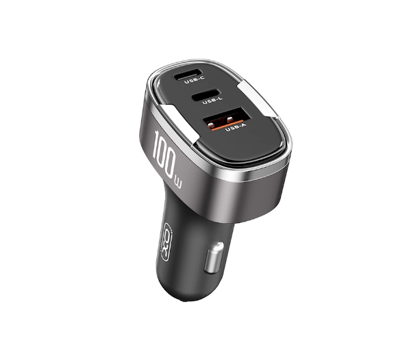 Ładowarka samochodowa XO CC61 USB-A USB-C Lightning 100W Czarno-szary