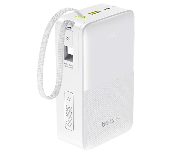 Powerbank Baseus EnerFill FC51 Bipow 2 Pro 30000mAh 22,5W Cyfrowy wyświetlacz, Wbudowany kabel USB-C Biały