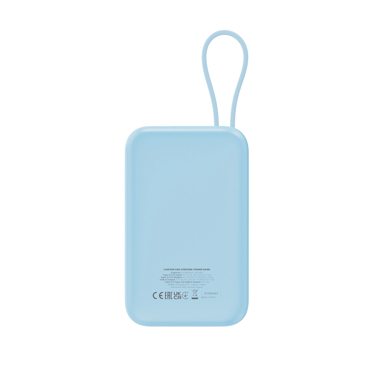 Powerbank Canyon OnPower 101 z kablem USB-C 10000mAh 22,5W Niebieski