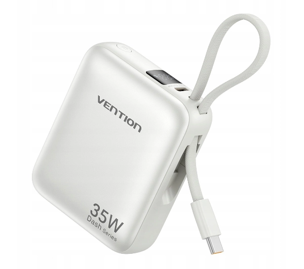 Powerbank Vention FHEN0 10000mAh 35W Wbudowany kabel USB-C Beżowy