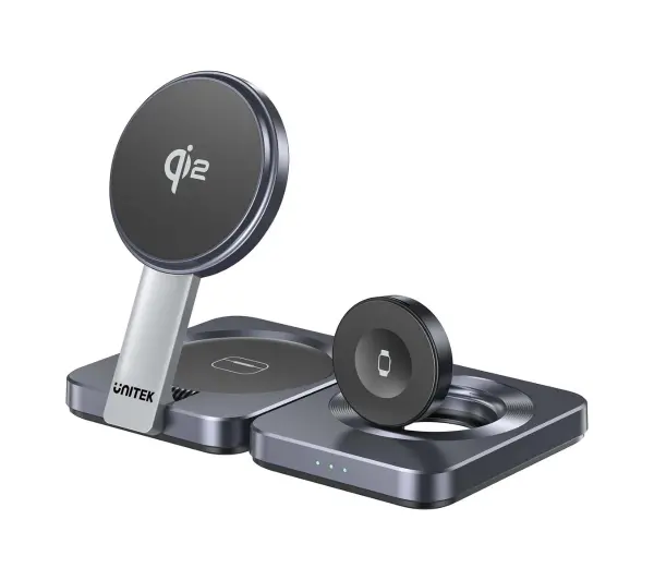 Ładowarka indukcyjna Unitek 3w1 Qi2 15W Szary