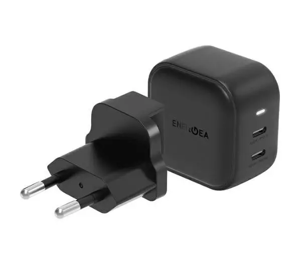 Ładowarka sieciowa Energea 2xUSB-C PD-PPS 45W 2C US+EU Travelite GAN45 Czarny