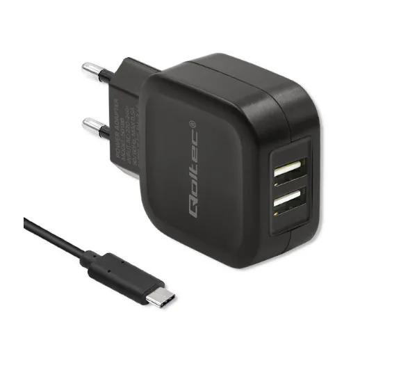 Ładowarka sieciowa Qoltec 50188 2x USB-A 17W Czarny + Kabel USB-C