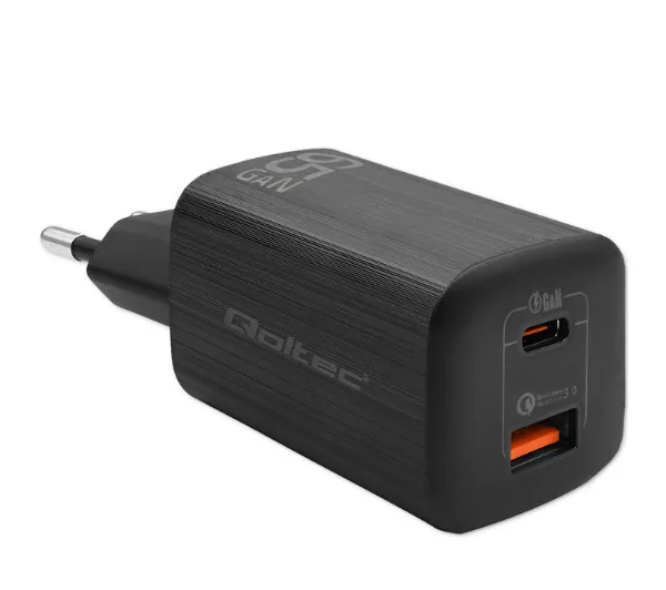 Ładowarka sieciowa Qoltec 50766 GaN USB-A USB-C 65W Czarny