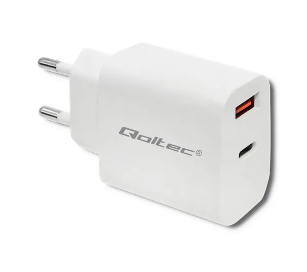 Ładowarka sieciowa Qoltec 51714 USB-A USB-C 18W Biały