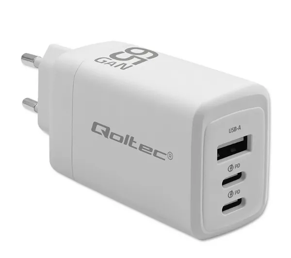 Ładowarka sieciowa Qoltec Power Pro GaN USB-A 2x USB-C 65W Biały