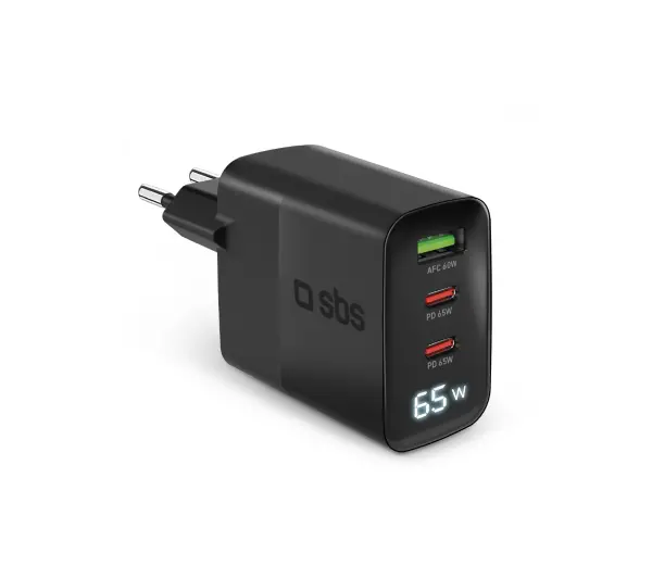 Ładowarka sieciowa SBS WALL GaN 65W LCD 2xUSB-C USB-A Czarny
