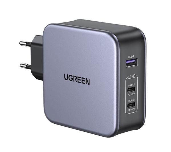 <h2>Ładowarka sieciowa UGREEN 140 W z kablem</h2><p>Ładuj aż 3 urządzenia jednocześnie z ładowarką sieciową UGREEN o mocy 140 W. Urządzenie wyposażono w 2 porty USB-C i jeden port USB, dzięki czemu nie musisz się ograniczać. Protokoły szybkiego ładowania zapewniają błyskawiczne zasilenie wybranych urządzeń. Nowoczesna technologia GaN II zwiększa możliwości ładowarki. CD289 kompatybilna jest z telefonami, tabletami, słuchawkami TWS i laptopami. W skład zestawu wchodzi kabel USB-C/USB-C.</p> <h2>Szybkie ładowanie</h2><p>Ładowarka UGREEN obsługuje protokoły szybkiego ładowania PD 3.1 i 3.0, QC 4.0, PPS, SCP oraz AFC. 30 minut wystarczy, aby poziom naładowania iPhone’a 13 osiągnął 60%. Tyle samo czasu potrzeba, aby Huawei P50 naładowany został w 50%, a Mackbook 16 – w 56%. Zapomnij o długim czekaniu! 3 porty USB umożliwiają ładowanie z mocą nawet 140 W.</p> <h2>Bez ograniczeń</h2><p>Z ładowarką UGREEN możesz ładować nawet 3 urządzenia jednocześnie. Nie musisz się już ograniczać! CD289 automatycznie dopasuje moc do ładowanych urządzeń. Produkt UGREEN cechuje duża uniwersalność. Ładowarka kompatybilna jest między innymi z telefonami marek Apple i Samsung, bezprzewodowymi słuchawkami, iPadami i laptopami.</p> <h2>Technologia GaN</h2><p>Zaawansowana technologia GaN umożliwia maksymalną wydajność energii oraz optymalne rozprowadzanie ciepła. A to nie wszystkie atuty ładowarki UGREEN! Jej ogromną zaletą jest mały rozmiar. W porównaniu ze standardową ładowarką 140 W CD289 jest aż o 21.9% mniejsza.</p>