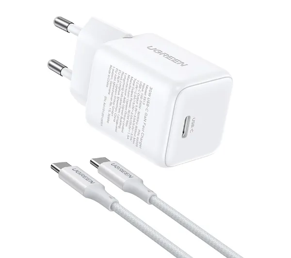 Ładowarka sieciowa UGREEN X513 USB-C 30W + Kabel USB-C 1m Biały