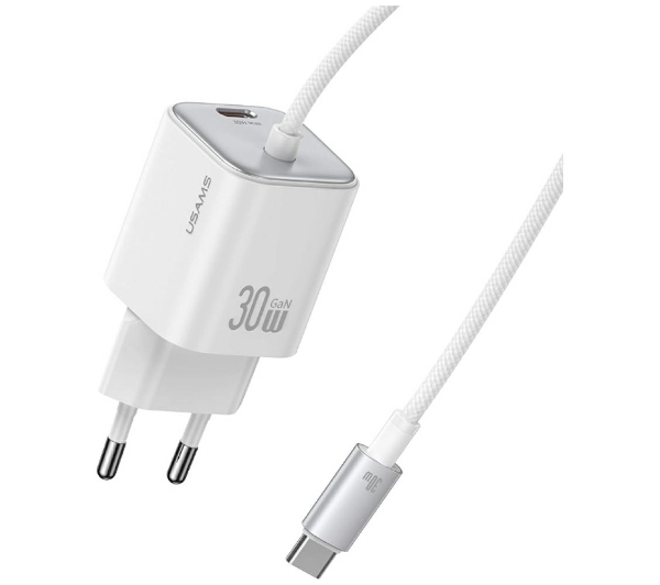 Ładowarka sieciowa USAMS JC Series CC264 30W GaN Mini Fast Charge 2x USB-C Biały