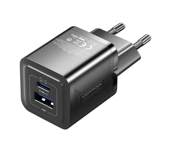 Ładowarka sieciowa Vention 1x USB-A 1x USB-C GaN 30W Czarny