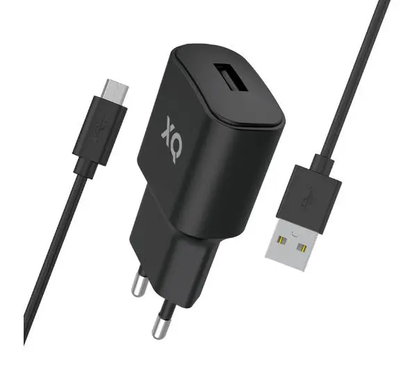 Ładowarka sieciowa Xqisit USB A 2,4 A + kable microUSB 1m czarna
