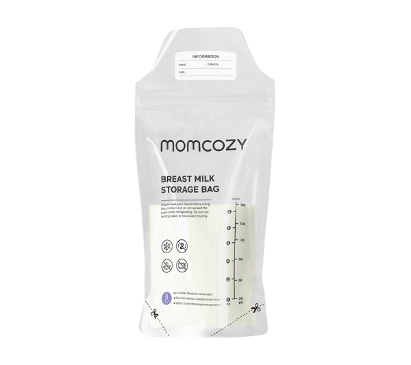 <h2>Woreczki do przechowywania mleka kobiecego Momcozy 120 szt. (polietylen)</h2><p>Woreczki Momcozy pozwalają na bezpieczne przechowywanie mleka kobiecego. Są wykonane z polietylenu, który nie zawiera BPA ani ftalanów, co zapewnia wysoki poziom higieny. Pojemność wynosząca 180 ml na woreczek umożliwia wygodne przechowywanie porcji pokarmu i zachowanie jego wartości odżywczych oraz świeżości. Praktyczny wskaźnik temperatury pomaga kontrolować warunki przechowywania mleka.</p> <h2>Szczelne i praktyczne rozwiązanie</h2><p>Podwójne zamknięcie suwakowe skutecznie chroni przed wyciekami podczas przechowywania i transportu. Dzięki możliwości przechowywania woreczków w pozycji pionowej lub płaskiej łatwiej jest zoptymalizować przestrzeń w lodówce lub zamrażarce. Wyraźna skala pozwala na precyzyjne odmierzanie przechowywanego mleka.</p> <h2>Higieniczne i wygodne napełnianie</h2><p>Każdy woreczek posiada dwa oddzielne otwory – jeden do napełniania, drugi do opróżniania. Taka konstrukcja minimalizuje ryzyko rozlania i ułatwia zachowanie czystości. Na woreczkach znajduje się miejsce na notatki, które umożliwia zapisanie daty oraz godziny odciągnięcia pokarmu, co pomaga w organizacji zapasów.</p> <h2>Wskaźnik temperatury</h2><p>Wskaźnik temperatury zmienia kolor w zależności od stanu przechowywanego mleka. Fioletowy kolor oznacza, że mleko jest zimne, niebieski wskazuje optymalną temperaturę do podania, a biały sygnalizuje zbyt wysoką temperaturę.</p> <h2>Wielofunkcyjność zastosowań</h2><p>Woreczki Momcozy sprawdzą się nie tylko do przechowywania mleka kobiecego, ale również do innych produktów spożywczych, takich jak soki, przeciery owocowe czy przekąski. To praktyczne akcesorium dla mam, które cenią wszechstronne rozwiązania do organizacji żywności.</p>