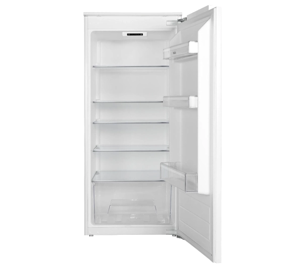 Wyposażenie: 5 półek szklanych, 3 półki w drzwiach, pojemnik na jajka, 1 szuflada na warzywa i owoce
