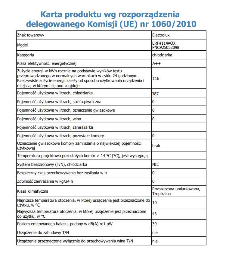 Nazwa producenta / importera: Electrolux Poland Sp. z o.o.