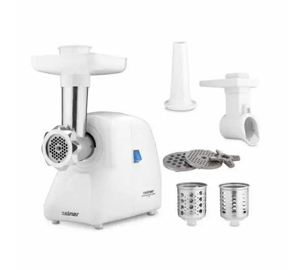 <h6>Niezawodna maszynka do mielenia mięsa</h6><h6>Sitka ze stali nierdzewnej</h6><h6>Komfortowe użytkowanie</h6><h6>Duża wydajność</h6><h2>Maszynka do mięsa ZMM2854B</h2> Moc znamionowa (W): 220Moc chwilowa (W): 1300Wydajność mielenia (KG/MIN): 1.5Metalowa komora mielenia: +Funkcja rewers: -Antypoślizgowe, gumowe nóżki: +<h2>Zelmer — tam, gdzie tradycja spotyka się z technologią.</h2><h4>2 rodzaje sitek</h4><p>Maszynka do mięsa Zelmer jest wyposażona w 2 sitka o dużych i małych oczkach. Pozwoli Ci to uzyskać odpowiedni stopień rozdrobnienia w zależności od potrawy, którą chcesz przygotować.</p><h4>Ostrze dwustronne</h4><p>Idealnie gładka masa na kotlety? Z maszynką Zelmer właśnie taka będzie! Za ten efekt odpowiada dwustronne ostrze, które dokładnie rozdrobni mięso, strączki czy warzywa.</p><h4>Szatkownica</h4><p>Dzięki maszynce do mięsa Zelmer przygotujesz nie tylko mielone na kotlety czy gołąbki! Dołączona szatkownica wyposażona w 2 rodzaje tarek (wiórki i do ziemniaków). Wygodne krojenie i ścieranie to więcej surówek i więcej zdrowia.</p><h4>Przystawka masarska</h4><p>Co powiesz na aromatyczną kiełbasę domowej roboty? Jeśli chcesz spróbować swoich sił w tradycyjnej produkcji, użyj specjalnej nasadki na maszynkę Zelmer, a mięso ułoży się w odpowiedni kształt.</p><h2>Akcesoria w zestawie</h2><p>Sito o dużych oczkach</p><p>Sito o małych oczkach</p><p>Przystawka do wyrobu kiełbasy</p><p>Szatkownica</p><p>Tarka- wiórki</p><p>Tarka do ziemniaków</p><p>Ostrze dwustronne</p><h4>Czy wiesz, że...</h4><p>Połącz ze sobą różne rodzaje mięsa, by uzyskać nowe, ciekawe wrażenia smakowe!</p><h2>Zainspiruj się</h2><h2>Skompletuj swój zestaw</h2><p>Blendery kielichowe</p><p>Tostery</p><p>ekspresy do kawy</p><p>maszynki do mięsa</p><p>Wagi kuchenne</p><p>OPIEKACZE DO KANAPEK</p><p>Niezmiennie ponad 50 lat pozostaje w naszych domach.</p>